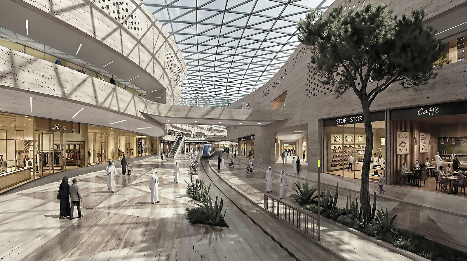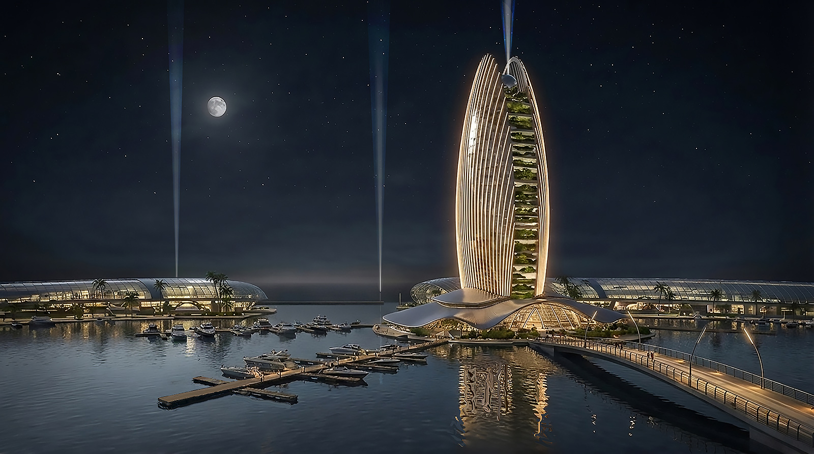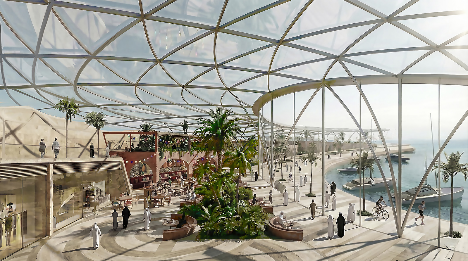 Lüks yatların görsel sunumunu en üst düzeye çıkarmak temel bir amaçtır ve tasarım, alışveriş merkezi, botanik bahçesi, plaj ve eğlence merkezi gibi çeşitli program türlerini içermektedir . Bu unsurlar, iç sürekliliği sağlamak ve ulaşımı ve kullanıcı akışını yönlendirmek için ana bir omurga boyunca entegre edilmiştir. Bu omurga, farklı işlevler ve kullanıcılar arasında güçlü ilişkiler kurarak rekreasyon deneyimini geliştirir.